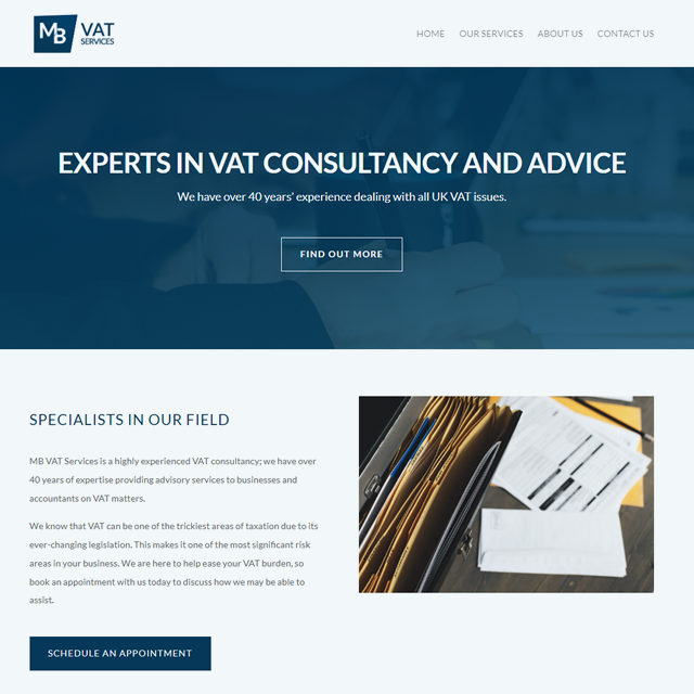 A corporate, one-page website design for a tax consultancy service in Oxford, UK.